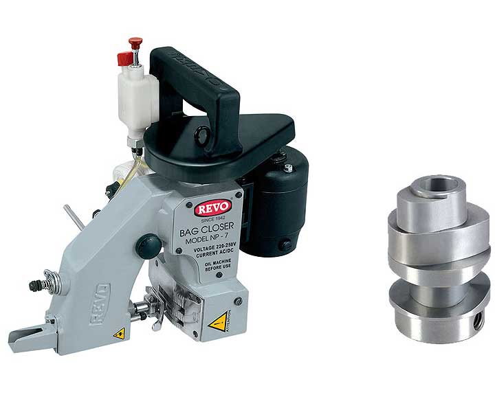 The Revo® NP-7A closes bags of agricultural products, animal feeds, fertilizer, flour, chemicals and other pelleted and powder materials. The versatile closer also sews on horizontal surfaces and can be used to join two fabrics.