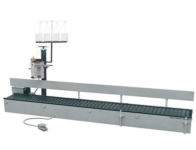 The RC-8 sewing head is available with a wide choice of slat or belt conveyor systems in various lengths. Conveyors can also be custom manufactured to different specified lengths. The machine also has provision of a variable speed pulley allows synchronization with existing conveyor systems